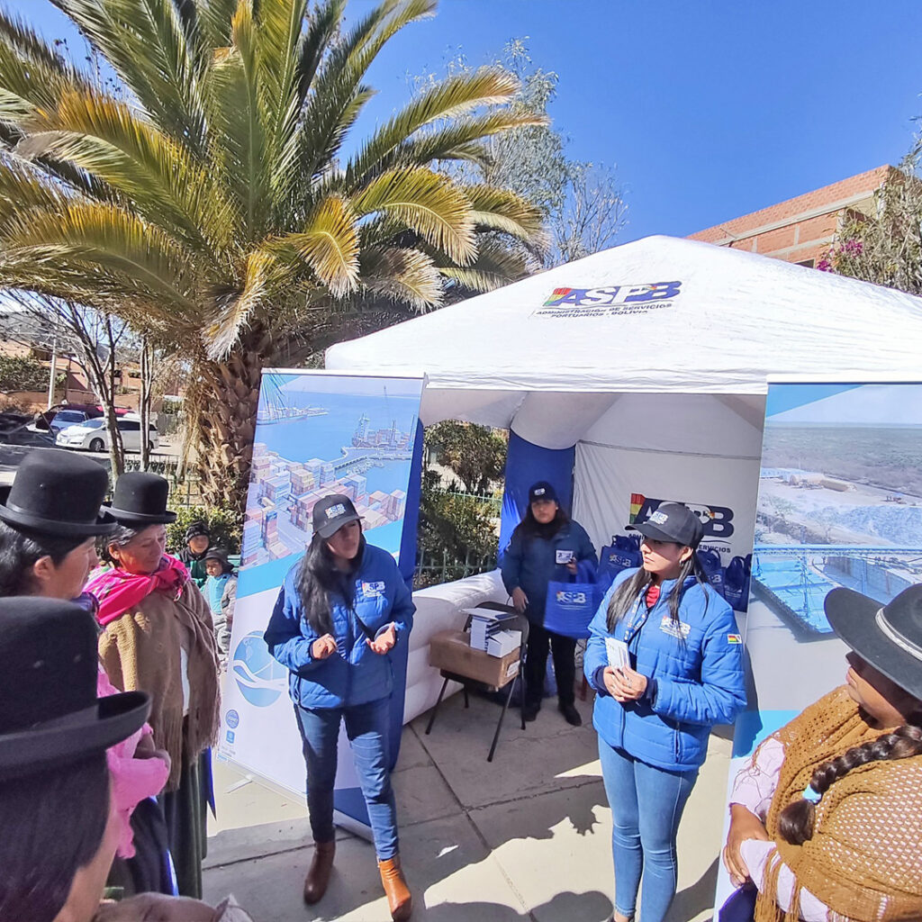 La Administración de Servicios Portuarios – Bolivia, participó del desarrollo de la feria interinstitucional promoviendo el uso responsable de los recursos y bienes del Estado, así como el acceso a la información, y la socialización de la Ley N° 341 de Participación y Control Social con la finalidad de promover los principios, atribuciones, derechos, obligaciones y las formas de su ejercicio, en aplicación de los Artículos 241 y 242 de la Constitución Política del Estado.